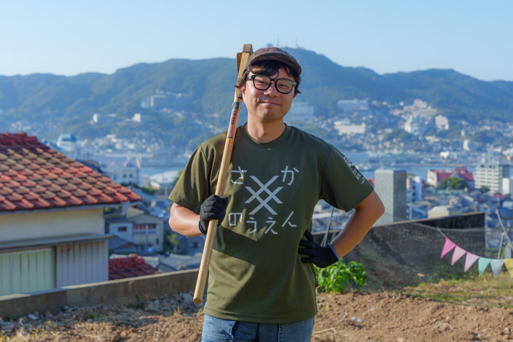 坂の町長崎。さかのうえんは、斜面地にある未活用の空き地を畑として整備することで、再び資源として活用するための取り組みを行っています。